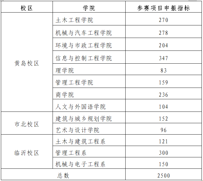 根据《山东省教育厅关于印发“建行杯”第九届山东省大学生科技创新大赛方案的通知》(鲁教高函〔2022〕29号)要求,我校将于2022年10月至12月组织参加“建行杯”第九届山东省大学生科技创新大赛校赛(以下简称“大赛”),现将有关事宜通知如下: