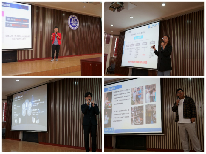 会上,省赛银奖获得者周正同学通过展示团队参赛文案分享了自己的参赛历程和感悟,为有兴趣参赛的同学较为立体的呈现了大赛的各个环节;省赛铜奖获得者张鑫洋同学详细分享了大赛报名步骤以及参赛所需的各项材料,重点分享了商业计划书撰写和路演PPT制作;省赛银奖获得者王琛同学就参赛申报材料所需的1分钟VCR制作与展示、备赛过程中遇到的常见问题进行了细致分享,并结合自身经验给出了针对性建议;省赛铜奖获得者栾天翔同学从大赛简介、项目介绍、心得体会等方面分享了自己的经验与心路历程;省赛银奖获得者马晓亮同学从赛前准备、参赛要点和注意事项等方面进行了全面解析。