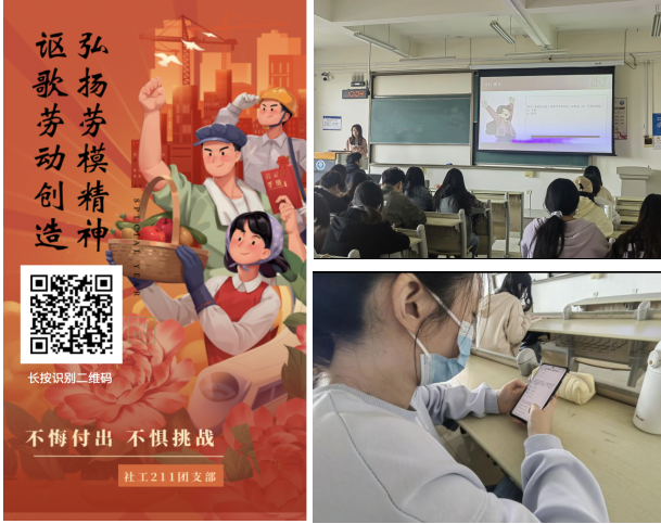 发挥基层团组织活力,以团支部为单位开展了系列劳动教育活动。各团支部结合新时代大学生思想实际,集中开展劳模人物的事迹宣讲,有守正创新传承民族公益的全国劳模任金素,使命在肩不惧挑战的四度飞天第一人景海鹏,倾力扶贫舍身忘我的时代楷模黄文秀……,使学生深刻地了解到习近平总书记对青年的期望和对劳模精神培养的重视,体会新时代劳动精神的实质内涵。