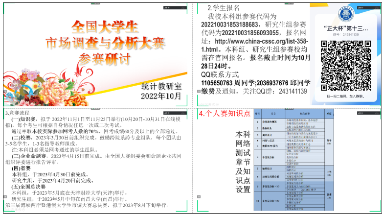为进一步做好“正大杯”第十三届全国大学生市场调查与分析大赛的组织实施工作,同时为加强统计学专业师资队伍建设,提高教师教学科研水平,近日,商学院运用线上线下相结合方式,在C1-4-604室举行“正大杯”第十三届全国大学生市场调查与分析大赛指导教师培训研讨会。本次培训研讨会特邀市调大赛3044永利集团官网负责人、商学院冯等田副教授担任主讲,我校参赛指导老师参加会议。