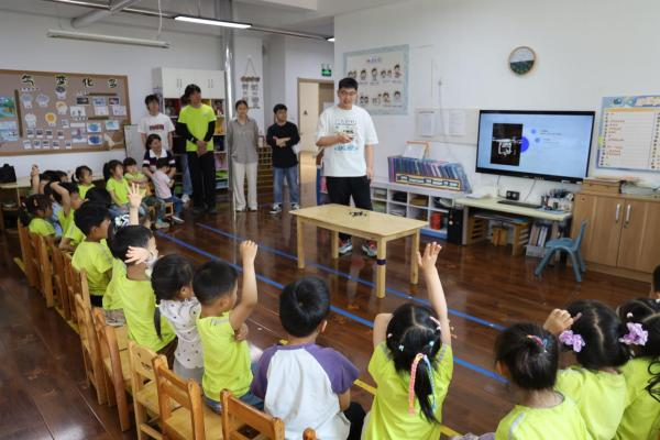 2025年5月28日,信息与控制工程学院大学生创新实践基地走进京华合木幼儿园,开展“科技周大学生科技作品展示”活动,此次活动是响应2025年青岛市科技活动周的系列举措之一。在基地创新实验室教师王红霞、高祥、洪博为的带领下,创新实践基地学生代表王友成、闫晓宇、吴玉泽、孙海洋、郭金倩等同学,为孩子们带来了一场兼具趣味性与知识性的科学启蒙体验,通过展示讲解创新实践基地的实践作品,激发幼儿对科学的好奇心。