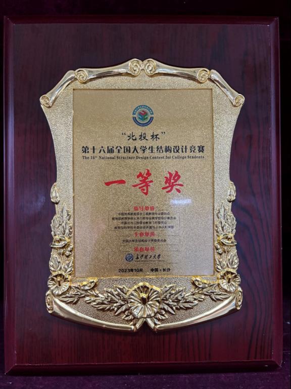 10月26日,由全国大学生结构设计竞赛委员会主办、长沙理工大学承办的“北投杯”第十六届全国大学生结构设计竞赛在长沙理工大学云塘校区隆重举行。经全国31个省(市自治区)581所高校、1463支参赛队分区赛角逐118所高校、119支队伍来到总决赛现场。我校土木工程学院敦华队(队员:王文佳,蔡胜阳,胡安晓;领队:邵先锋;指导老师:王子国、王俊富)从全国119支参赛队伍中脱颖而出,获得大赛一等奖。