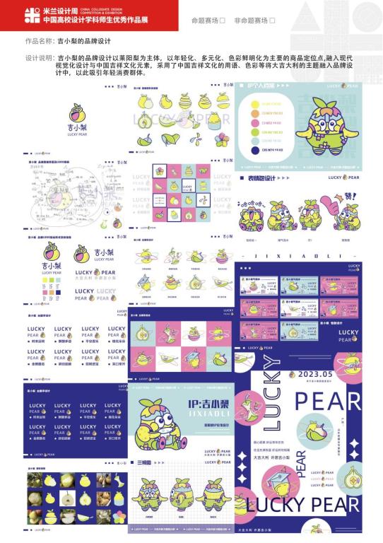 近日,全国普通高校学科竞赛排行榜内竞赛“米兰设计周——中国高校设计学科师生优秀作品展”拉下帷幕,在“设计赋能‘土特产’,助力乡村振兴”公益赛道国赛评审中,我校设计学研究生孙涤非的作品《青小梨的品牌设计》(指导教师为朱宏轩教授),经赛事组委会、承办单位及命题单位多轮评审后,喜获国家级一等奖的优异成绩。