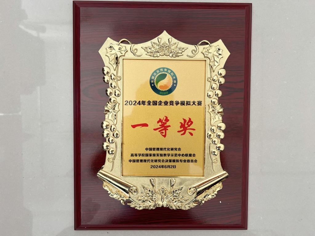 近日,由中国管理现代化研究会、高等学校国家级实验教学示范中心联席会经管学科组指导,中国管理现代化研究会决策模拟专业委员会主办的2024全国企业竞争模拟大赛——人力资源决策及数智沙盘赛道通过线上竞赛落下帷幕。我校获得人力资源决策赛道国家一等奖1项,国家三等奖3项;数智沙盘赛道国家一等奖1项,国家二等奖2项,王中帅、陈贞老师获得优秀指导教师。