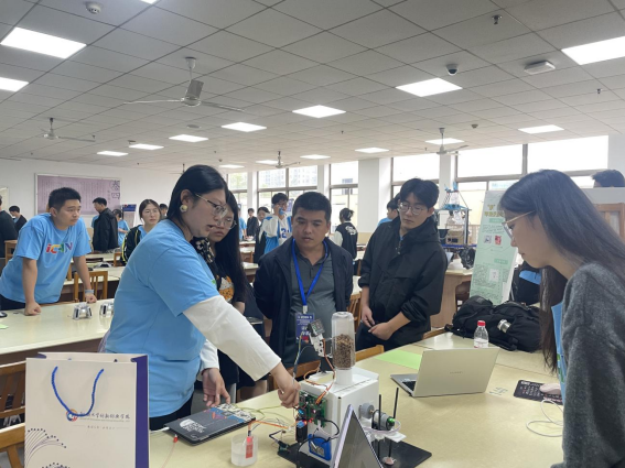 比赛分为巡展路演环节和现场答辩环节。巡展路演环节中,评委老师和参观人员对所有线下参展作品进行打分,最终评选出现场最佳人气奖。同时,同学们在巡展路演环节,积极交流、认真学习,开阔眼界、提升自身水平。现场答辩环节中,参赛同学充分阐述作品设计理念,积极回答专家提问,展现对项目未来发展的清晰规划。