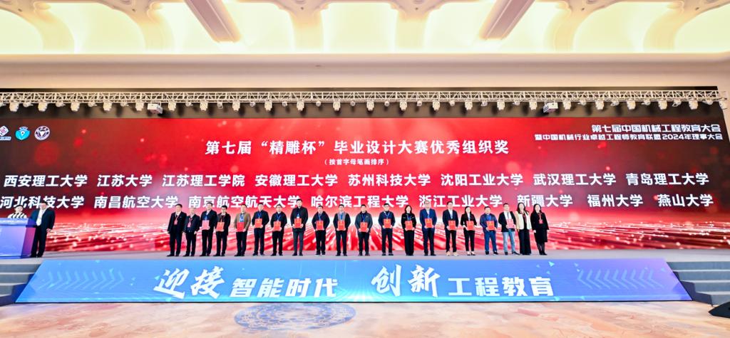 11月23日至25日,由中国机械工程学会、中国机械行业卓越工程师教育联盟主办,浙江大学等承办的“第七届中国机械工程教育大会暨中国机械行业卓越工程师教育联盟2024年理事大会”在杭州隆重开幕。我校荣获“优秀组织奖”和一项作品“佳作奖”。
