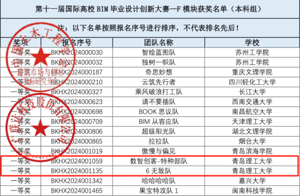 在 F 模块 BIM + 工程项目管理中,我校两支队伍凭借出色表现荣获一等奖。其中,由刘丁、苏瑛老师指导的 “6 无敌队”,队长刘冰倩,队员韩佳琦、韩鲁豫、赵浩如、李昕蒙。另一支获奖队伍 “数智创客 - 特种部队” 由周凯、李晓冬老师指导,队长田丽杰,队员臧浩宇、工牛水悦、朱钥、田智皓。两支队伍在项目管理方案设计等核心环节中,充分展现了扎实的专业素养与卓越的实践能力,最终斩获该模块一等奖。