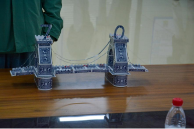 美观组参赛选手带来的作品有“牛郎-织女桥”、“虹桥”等,给观众们带来了一场视觉盛宴,其中最令人眼前一亮的是“青理·鸿锦桥”,在美观的基础上,加上了“70”字样,庆祝建校70周年。比赛按签到顺序先后依次进行,每位参赛选手有两分钟时间对自己的结构进行解说,随后评委依据结构创意、美观程度、做工精细程度和选手解说四个方面进行综合评定。最终有8组队伍脱颖而出。