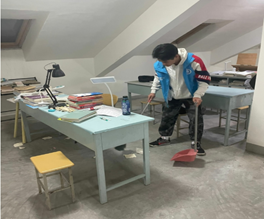 党建赋能:彰显先锋担当作为。在理学院的学生公寓里,总有一抹 “志愿蓝” 格外亮眼——由学生党员与入党积极分子组成的 “先锋服务队”,用实际行动诠释责任与担当。针对学生课余学习空间不足的需求,学院精心打造公寓顶楼自习室,并建立 “党员带头、积极分子协同” 的值日机制。每周,身披蓝色志愿马甲的学生骨干们准时到岗,化身自习室的 “守护者”。在劳动教育活动中,全体党员和积极分子充分发挥了不怕苦、不怕累的精神,无私奉献,以极大的热情投入到自习室环境维护劳动中,用自己的实际行动,给广大学生树立了榜样。